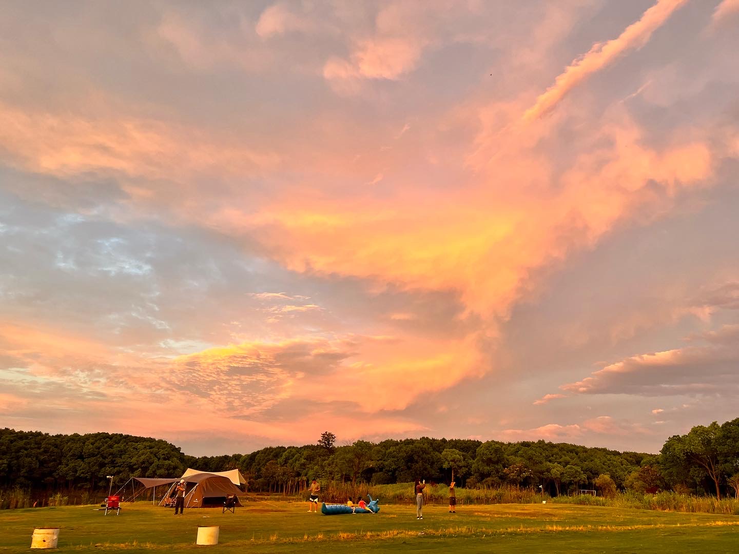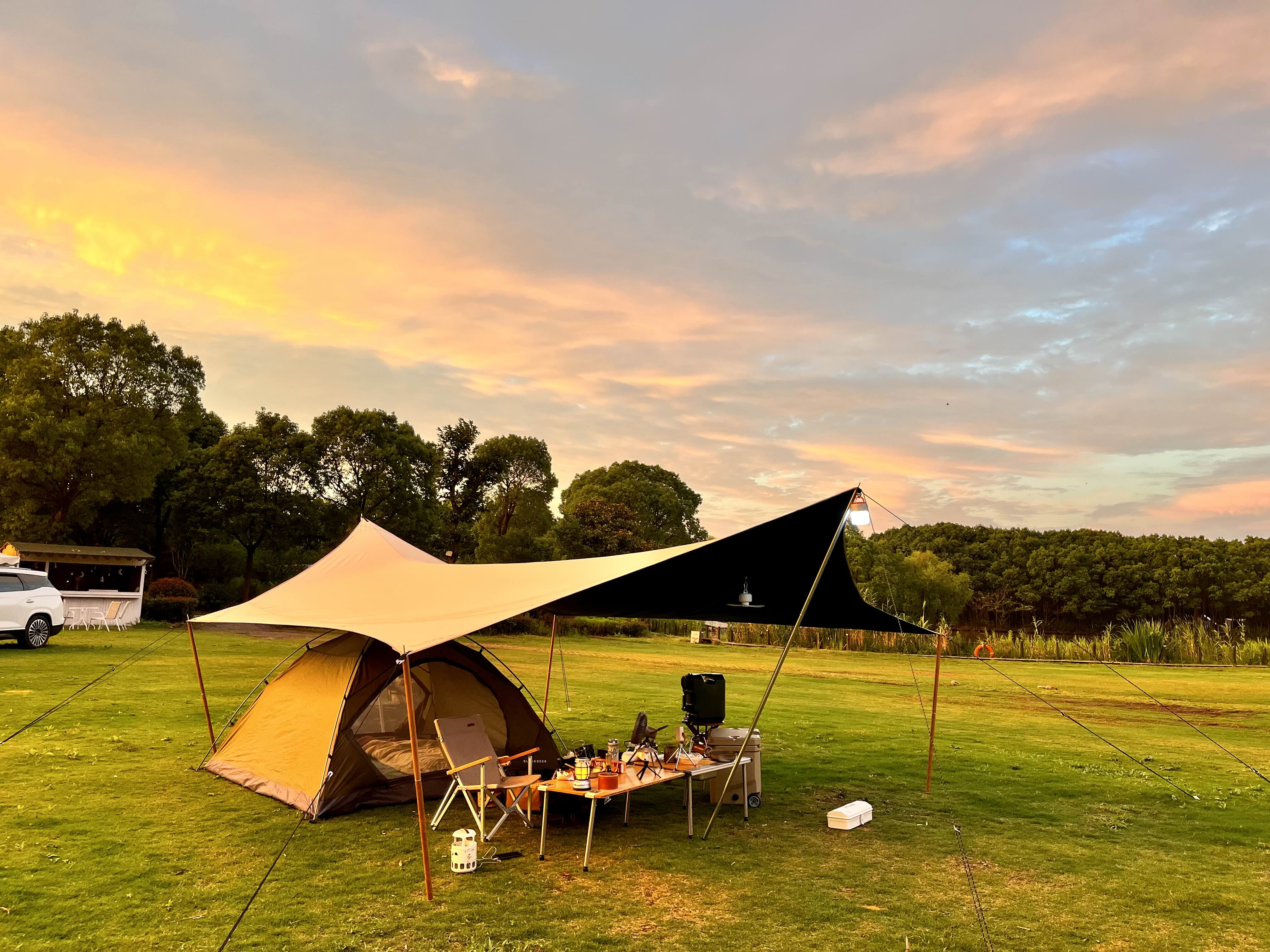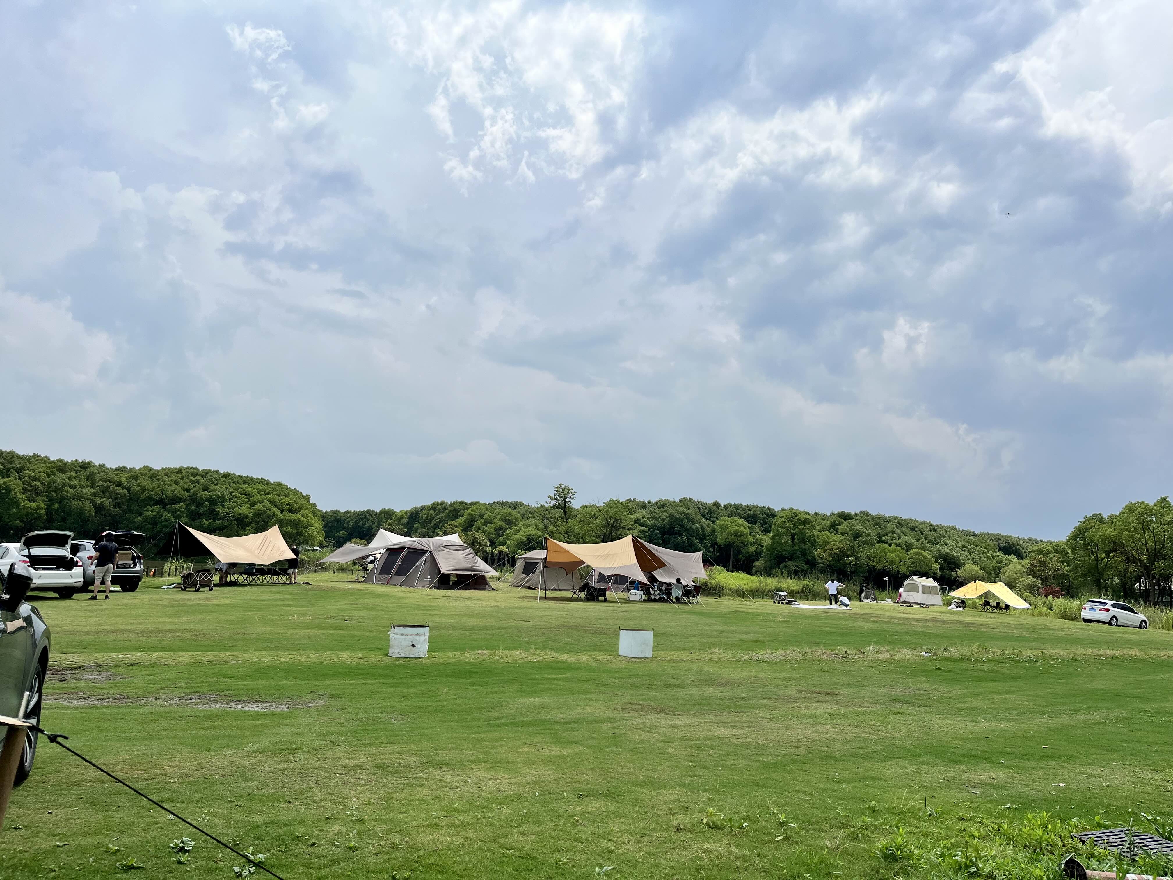 캠핑장은 상해시 英嘉庄园 이라는 곳이고 성인 1박기준 180 CNY, 나무숲 아래에 자리는 이미 예약이 차서 안되고 그냥 평지에 있는 자리에 세팅을 했네요.