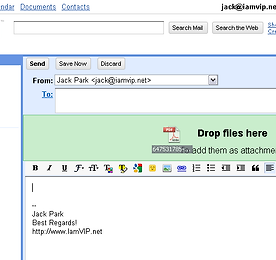 gmail 썸네일형 리스트형 Gmail Tips: 새로운 기능 - 첨부파일 붙여넣기 구글에서 제공하는 이메일 서비스인 Gmail에서 새로운 기능을 추가했습니다. 다름 아닌, 첨부 파일을 쭉 끌어서 붙여넣으면 메일에 첨부파일을 추가할 수 있습니다. 아래 그림 참고 즉, 파일첨부라는 버튼을 클릭하지 않고, 컴퓨터내의 파일을 끌어넣는 방법으로 파일을 첨부할 수 있다는 것입니다. 구글 멋져부려~~~ 더보기 파이어폭스 플러그인- 화려한 구글 지메일 유저 화면-Google Redesigned 오랜만에 파이어폭스 플러그인 추천합니다-.- 제가 개인적으로 매일마다 구글의 지메일 캘린더를 사용하는데, 가끔은 매일 보던 디자인이 지겨울 때 있는데, 오늘 검색해본 결과 파이어폭스 플러그인이 이런 고민을 해결해주는군요~~~ 일단 캡처 화면 올립니다. 구글의 지메일 등록 화면입니다. 지메일 사용자 화면 구글 캘린더 화면 구글 리더에도 적용이 되는 파이어폭스 플러그인입니다. 플러그인: Google Redesigned 설명 및 다운로드 주소: http://www.globexdesigns.com/products/gr/ 사용 방법: 다운로드해서 설치하면 됨 더보기 베타버전을 벗어난 지메일,구글 캘린더, 구글 닥스 아시다싶이 구글에서 무료로 제공하고 있는 서비스 중 Gmail, Google Calendar, Google Docs는 모두 베타버전이였는데, 7월7일부터 베타버전에서 벗어났다고 하네요.(via Google Operating System blog and NYT) 구글의 지메일은 2004년4월부터 베타버전으로 쭈~욱 운영해오다가 거의 5년만에 베타버전에서 벗어난셈입니다. 현재는 베타 글씨가 사라진 구글의 지메일 로고. 저는 지메일,캘린더,닥스 등 제품중에서 지메일>캘린더>닥스 이런 순위로 사용하고 있는데, 그중 캘린더의 이벤트 소식을 무료로 핸드폰에 전송되는 기능을 자주 사용하고 있습니다. 그리고 구글 닥스는 워드문서내용을 PDF버전으로 만들수 있는 기능도 유용한것 같습니다. 베타버전에서 벗어난 Gmail,.. 더보기 지메일(Gmail)에 이미지 삽입이 가능해졌습니다. 메일마다 다 된다는 이미지 삽입이 지메일에서만 안되었는데(물론 다른 툴로 지메일을 연동해서는 가능했음), 방금 구글 코리아 공식 블로그를 보니, 이젠 가능하다고 합니다. 사용 방법: 1. 지메일에 로그인 해서 세팅 왼쪽의 파란 색의 랩을 클릭한다. 2. 랩에서 이미지 삽입 기능의 랩 추가 및 저장 3. 메일 작성에서 이미지 아이콘 클릭 해서 이미지 추가 할 수 있음 이미지 삽입하고 싶은 분들 빨리 사용해보세요~~ 더보기 Gmail의 센스- 첨부파일 한번에 다운로드 하기 비록 아직은 Gmail이 베타버전이긴 하지만, 적지 않은 사람들의 사랑을 받고 있는것 같습니다. 작은 기능 하나하나씩 더욱 좋게 변해가는 지메일이 좋습니다. 지난번에는 첨부파일 업로드 상황 볼수 있었다고 전해드렸었는데, 이번에는 다 아는 첨부파일 한번데 다운로드 하는것입니다. 즉 사진 여러장이 첨부 파일일때 하나하나 다운로드 할 필요 없이 Download all attachments하면 zip파일로 다운로드 할 수 있습니다. 더보기 구글 Gmail의 작은 변화 - 첨부 파일 업로드 상황 보여주는 기능 방금 회사 내부 사이트에서 책 하나 다운로드 해서 볼려고, 저의 메일로 메일 보내는 중 우연하게 발견한 새로운 기능입니다. 다른게 아니라 제목처럼 파일 첨부 할때 파일 업로드 상황을 알려주는 알림 표시입니다. 덧1: PDF파일을 지메일 통해서 보면 더욱더 세련된 모습을 발견할 수 있습니다. 더보기 구글 Gmail 메뉴 디자인 바뀌다. 얼마전에 구글의 Gmail 메뉴 디자인이 바뀌었습니다. 좀 더 세련되었다고 해야 하나요? 그나저나, Gmail은 언제 베타 딱지를 벗는지 궁금하네요. 더보기 Gmail 단축 키 지난번에 자주 사용하는 구글 리더 단축키 Top10 라는 글을 올린 적이 있는데, 이번에는 Gmail의 단축 키를 소개할가 합니다. 사실 아래 그림 처럼 자주 사용할만한 단축 키들이 있습니다. 예를 들면 메일 작성하는데 단축 키 c를 클릭하면 메일 작성으로 되고 등... 상세한 Gmail단축 키 정보는 아래 공식 웹사이트에서 확인하세요. http://mail.google.com/support/bin/answer.py?ctx=gmail&answer=6594 참고로 Gmail에서 단축 키 사용하실려면 Settings 클릭 하셔서 설정 하셔야 합니다. 더보기 Gmail 메일 내용을 백업하는 방법 개인적으로 Gmail을 자주 사용하는 편인데, 블로그든지 사이트인지 백업이 아주 중요한 현재, Gmail 메일 내용 백업도 항상 해야 하지 않을가 싶습니다. 하지만, 번마다 받은 메일 내용을 수동으로 다른 메일함에 전달하기는 번거롭고 해서, 아래의 자동적으로 받은 메일을 전달 하는 방법도 있습니다. 사용 방법: 1.Settings-Forwarding and POP/IMAP 우의 화면 처럼 받을 메일 주소를 적어넣고, 화면과 똑같게 세팅을 하시면 됩니다. 이렇게 하시면, Gmail에 받은 메일을 수시로 백업 할 수 있어서, 혹시나 Gmail계정이 해킹 당하거나 혹은 Gmail이 로그인 되지 않을 때 백업된 메일 주소로 가셔서 메일 내용을 확인하면 됩니다. 더보기 지메일(Gmail)에서 음성 및 비디오 채팅을 즐겨보세요! 오늘 오전 누군가 twitter에서 구글의 지메일에서 비디오 채팅이 가능하다고 하던데, 방금 전 구글 코리아 블로그에서도 공식 글을 올렸군요..아래 첨부합니다. 저는 지메일(Gmail) 채팅기능을 매우 유